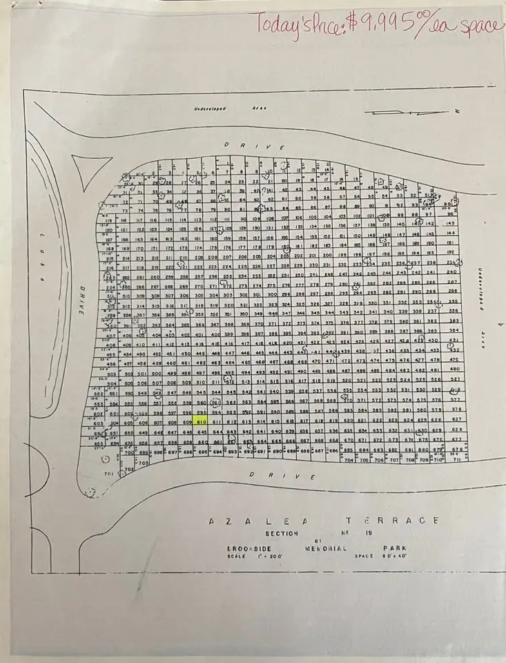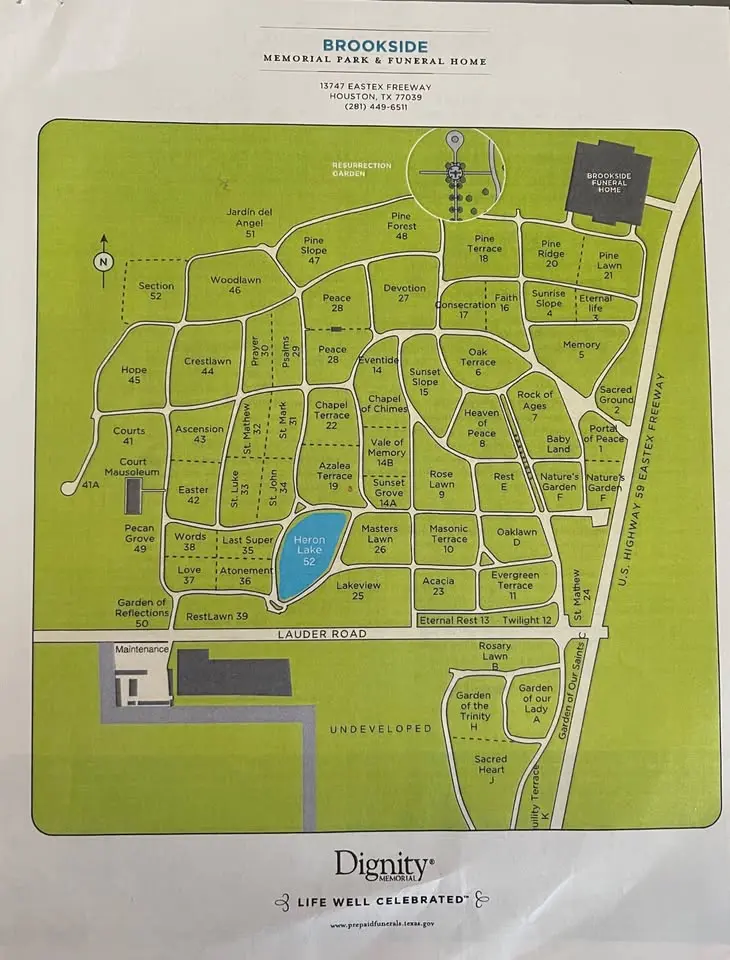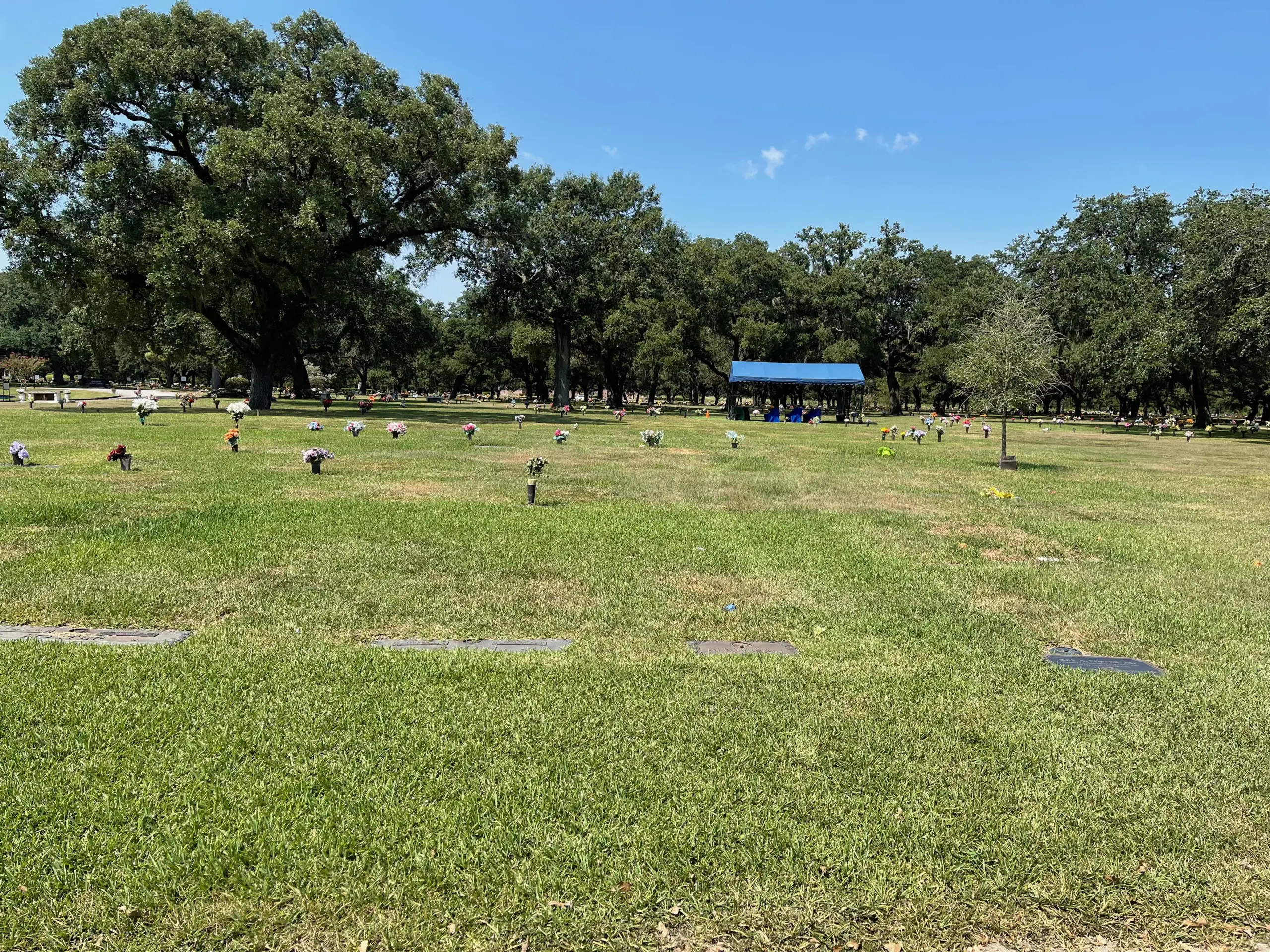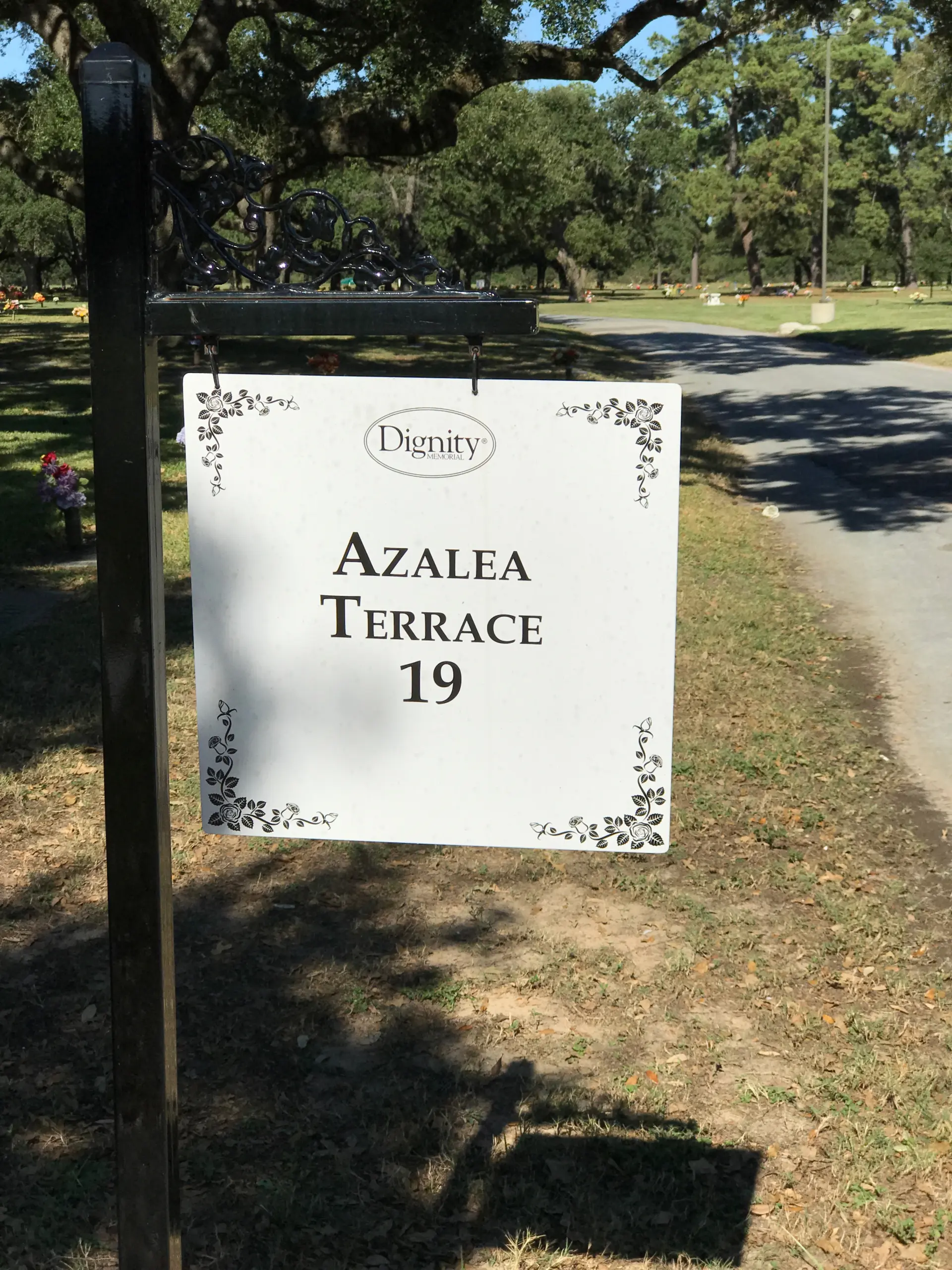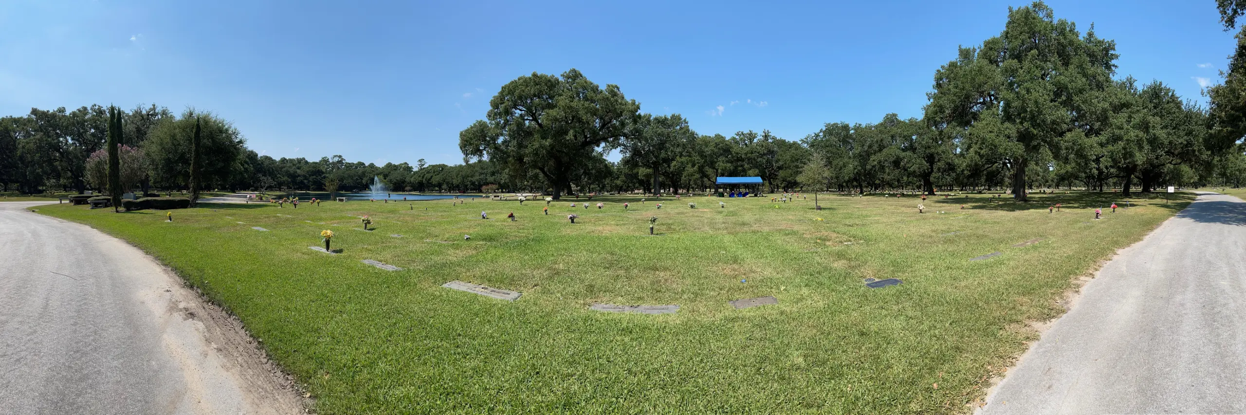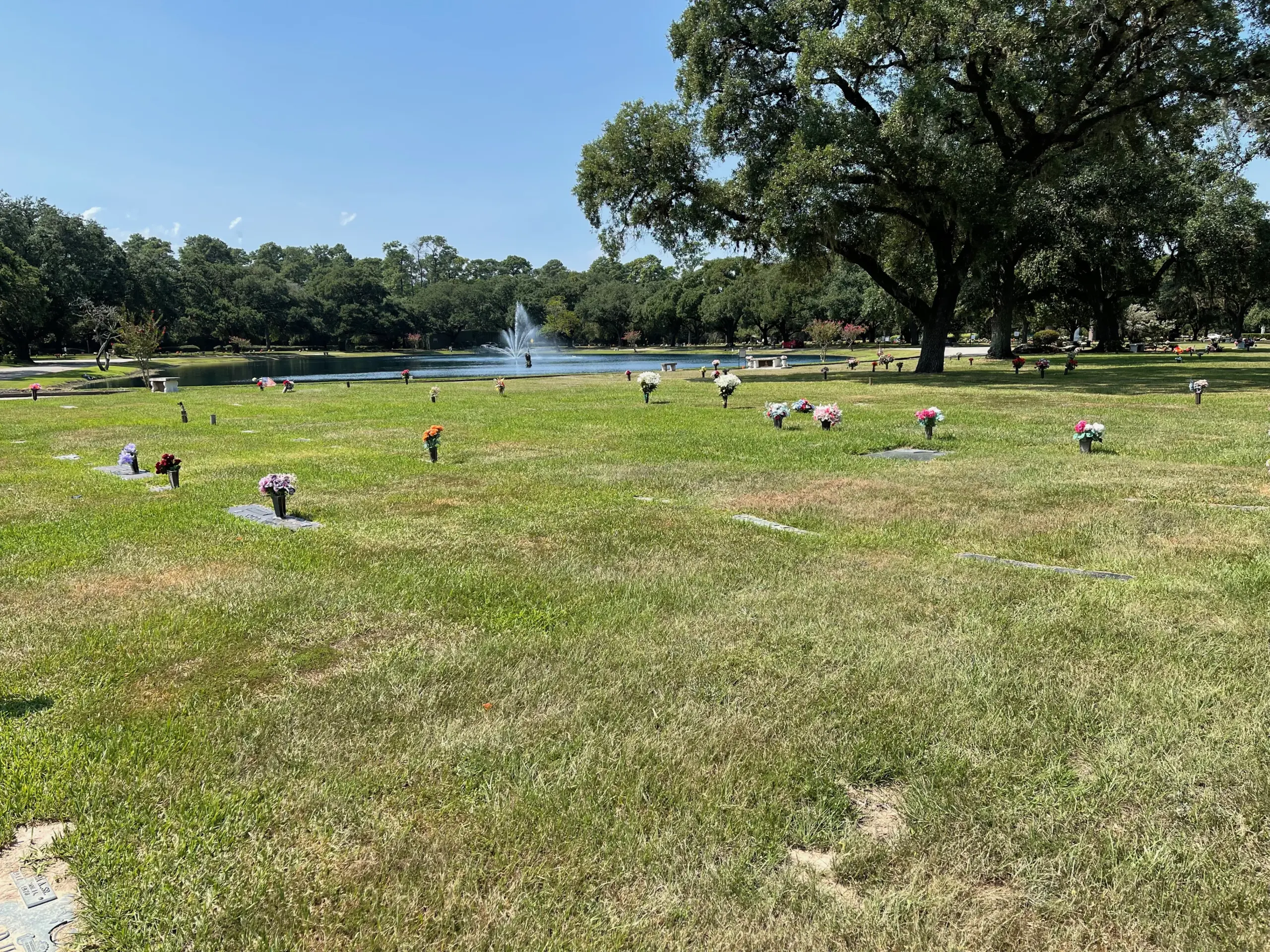 Cemetery plot with 4 spaces at Brookside Memorial Park in Houston, TX. This is the Azalea Terrace 19 section, which is right next to the pond.