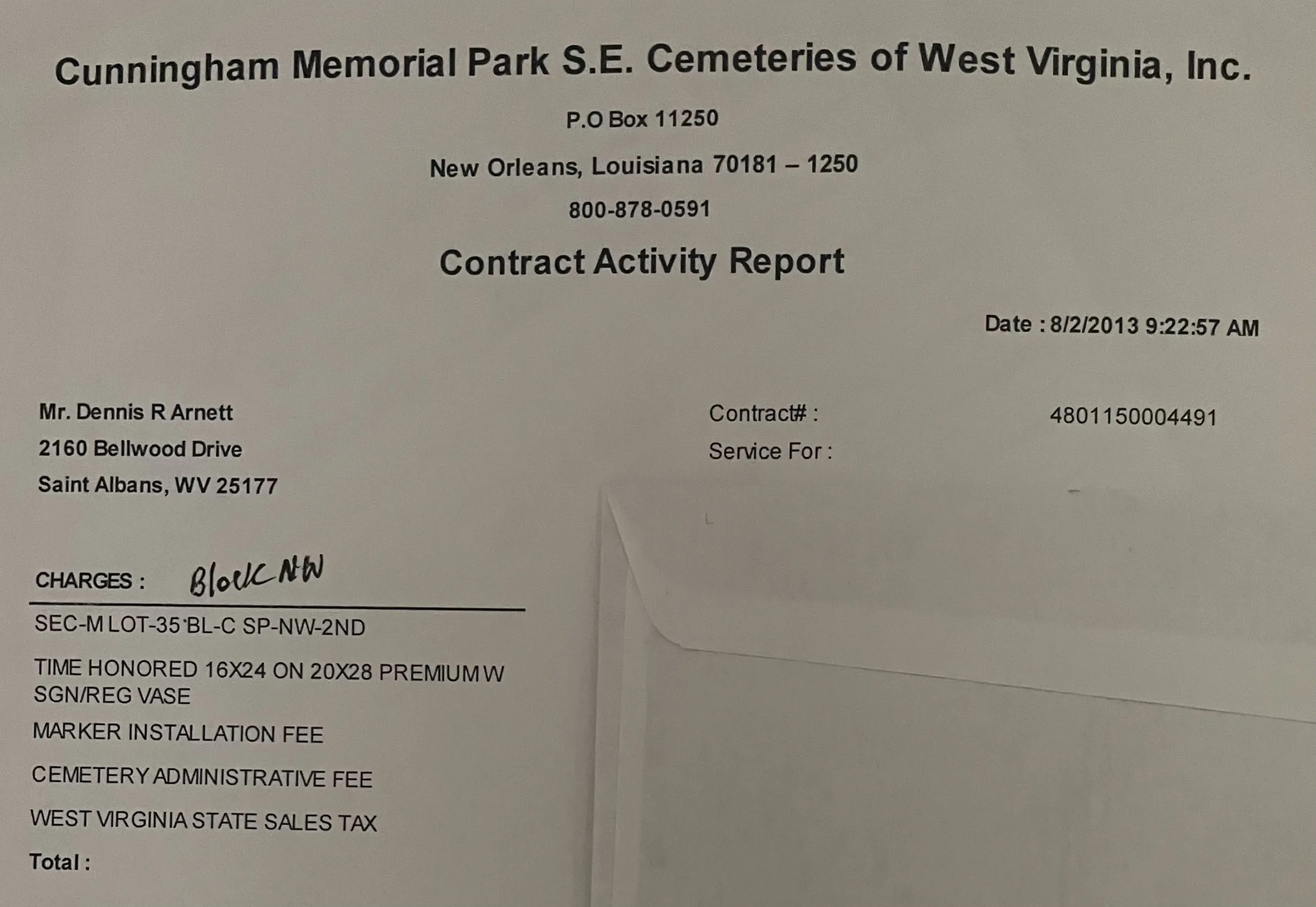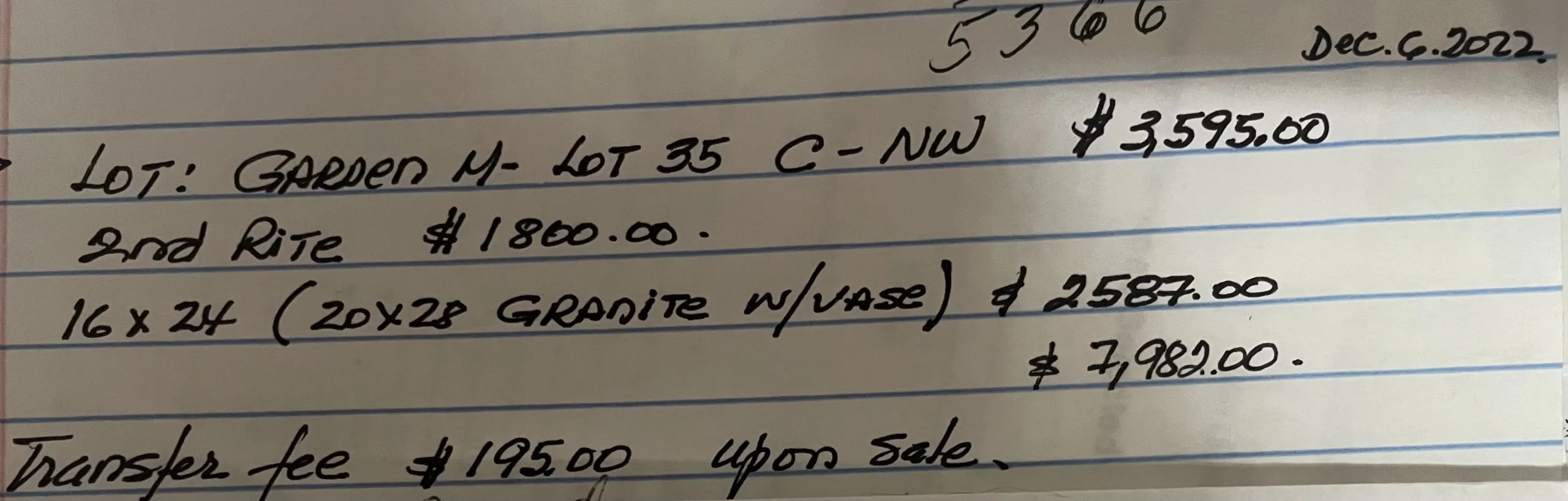 1 Lot 2nd Rite ( 2 cremations or 1 traditional) transfer fee upon sale.