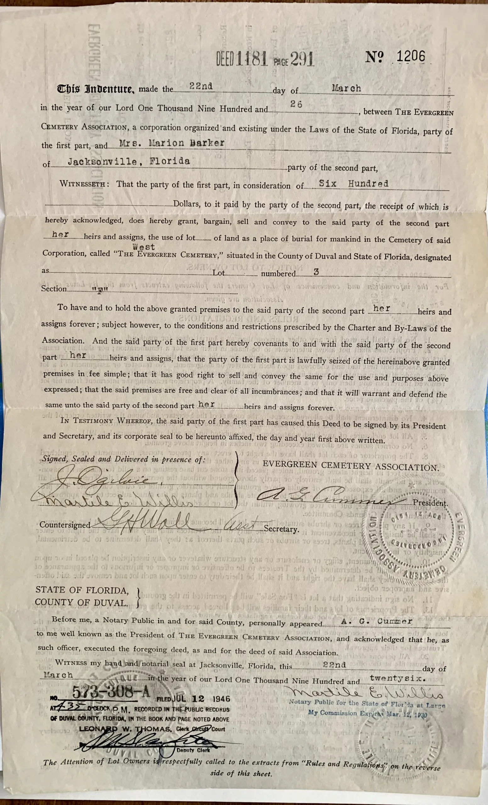 The Evergreen Cemetery is the oldest and historic Cemetery in Jacksonville, Florida.