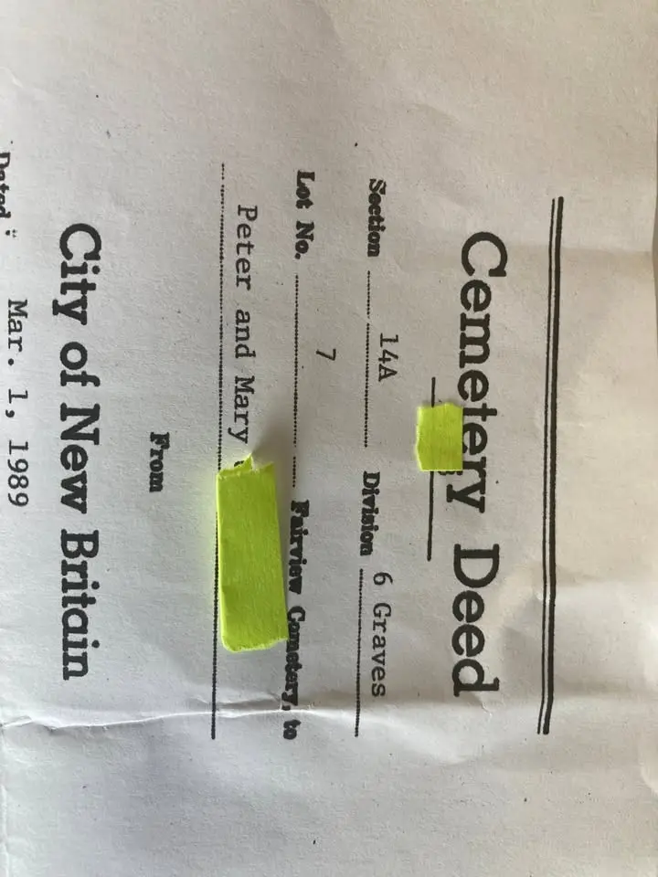 Cemetery NameFairvew Cemetery New Britain CT