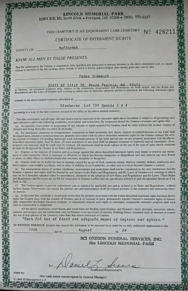 Cemetery NameLincoln Memorial Park in Portland's Mt. Scott area